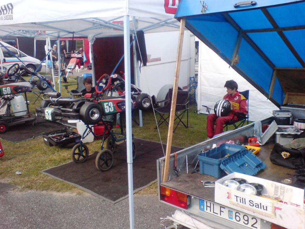 Vi fick hjälp av en annan kartingförälder att boka depåplatser så vi stod ett helt gäng UAK:are bredvid varandra. Det är trevligt och så lär man känna varandra bättre. Man kan också hjälpas åt med en del mekande. LMK har stora planer på att bygga om sin bana och kommer att starta med det ganska omgående nu när årets stora tävlingsvecka är över. Det ska bli intressant att se hur den nya banan blir.